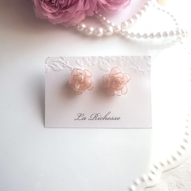 ◆―――――◆ 作品に関して ◆―――――◆ ディップアートの技法を用いて製作した 花びらがフリルになってエレガントで華やかなイヤリングになります。 (ピアスにも変更可能です) ◆―――――◆ 作品のおすすめ利用シーン ◆―――――◆ 繊細ながらも華やかな雰囲気のピアスなので おしゃれを楽しむ大切な日の着用におすすめしたい作品です。 ・おしゃれなディナー ・ワンピースやスカートコーディネートと合わせたデート ・大切なイベントの日 ◆―――――◆ ピアスサイズ/カラー/デザイン ◆―――――◆ 【ピアスサイズ】 約2cm 【カラー】 微細なラメが入ったピンク ワイヤーはゴールド ◆―――――◆ 購入方法/オプション選択 ◆―――――◆ ①金具選択 ピアス/イヤリングの金具部分は 以下の3種類からお好きなものをお選びいただけます。 ・サージカルステンレスピアス(チタンピアス代用の場合あり) ・ネジバネ式イヤリング ・クリップ式イヤリング+200円 ピアスは基本的にサージカルステンレスピアスの予定ですが 在庫状況によりチタンピアスに変更させていただく場合がございます。 気になる方はお手数ですがご購入前にお問い合わせください ◆―――――◆ ギフトラッピングに関して ◆―――――◆ +300円でギフトラッピングを承ります。 ・直接プレゼントをお渡しするとき ・遠方にお住まいの方に直送したい方 大切な誰かにプレゼントしたいときにぜひご利用ください。 ラッピングはオプション選択からお選びいただけます。 ◆―――――◆ 配送方法 ◆―――――◆ ・クリックポスト 送料は全国一律185円です。 土日祝も配送され基本的に作品はポスト投函されます。 ・発送日からのお届け目安日 おおよそ2日~3日(遠方の場合はそれ以上かかる場合もございます) ・レターパック 送料は全国一律600円です。 土日祝も配送され対面受け渡しになります。 ・発送日からのお届け目安日 おおよそ2日~3日(遠方の場合はそれ以上かかる場合もございます) ◆―――――◆ ご質問 ご相談 ◆―――――◆ ご相談や質問等ございましたら お気軽に作品写真下の質問ボタンからお問い合わせください。 【カラー変更について】 商品として全商品販売している中からのカラー変更は無料です。 ご希望のカラーがありましたら作品ページ右側にある 質問ボタンからご連絡いただければカラーのサンプル等 ご相談の上、お出しさせていただきます。 その場合はサンプル料として追加で500円料金がかかります。 予めご了承ください。 LINEからもお問合せ可能です。 【発送】 基本的に受注制作のため、納品が15日前後となっております。 長くお待たせして申し訳ございませんが、丁寧に作成してお渡ししたいので何卒ご理解いただけますと幸いです。 お急ぎの場合はお急ぎ便が数量限定でございます。 https://accessory.la-richesse.shop/items/86739533 【注意事項】 ・花びらなど手作業で作成していますので、大きさや色合いに個体差がございます。 既製品ではないため、ハンドメイドの良さとして感じていただけると幸いです。 ・色ムラ、気泡。微細な埃の混入がある場合がございます。 【お取り扱いについて】 繊細さを損なわない程度の薄さでレジンコーティングを施しております。 ですが落下などの衝撃に弱く、非常に繊細な作品なのでお取り扱いにご注意ください。 雨や汗などで汚れたりした場合はメガネ拭きのような柔らかい布で優しく拭っていただけると長持ちいたします。 【修理について】 送料+修理費(+材料費)で修理を承ります。 修理が困難な場合もございますのでご了承ください。 【返品・キャンセルについて】 お客様のご都合による返品・交換・キャンセル等はお断りさせていただいております。 ご購入前に今一度ご注文内容をご確認ください。 商品到着後は、すぐに中身のご確認をお願いしております。稀に郵送中の破損などもございますので、 お気づきの点がございましたらお手数ですがご連絡をお願いたします。(原則、到着から3日以内) 万が一商品が違う、又は不良品などがございましたら 未使用アイテムのみご対応させていただきますので、3日以内にご連絡くださいますようお願い致します。 配送時の破損は一切責任を負いかねます。