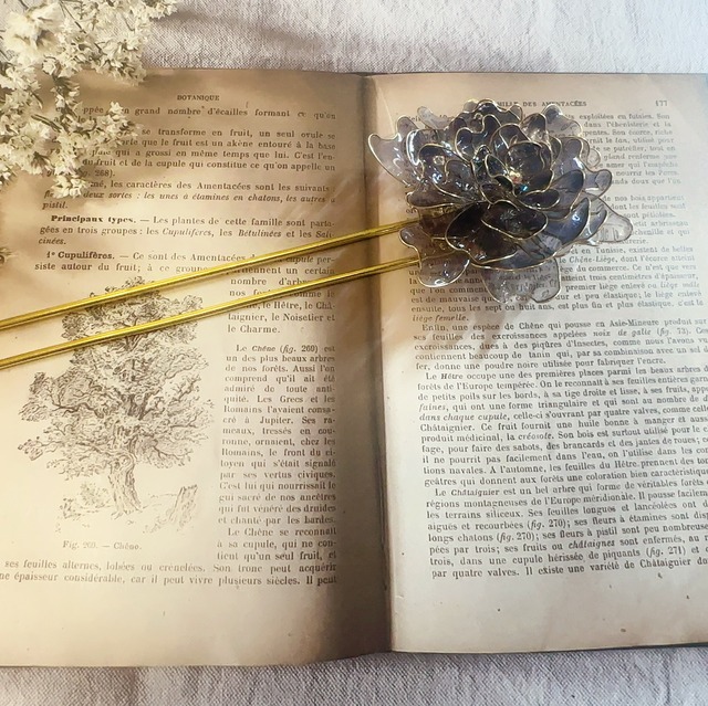 Notte Orientale クリアなブラックローズのかんざし