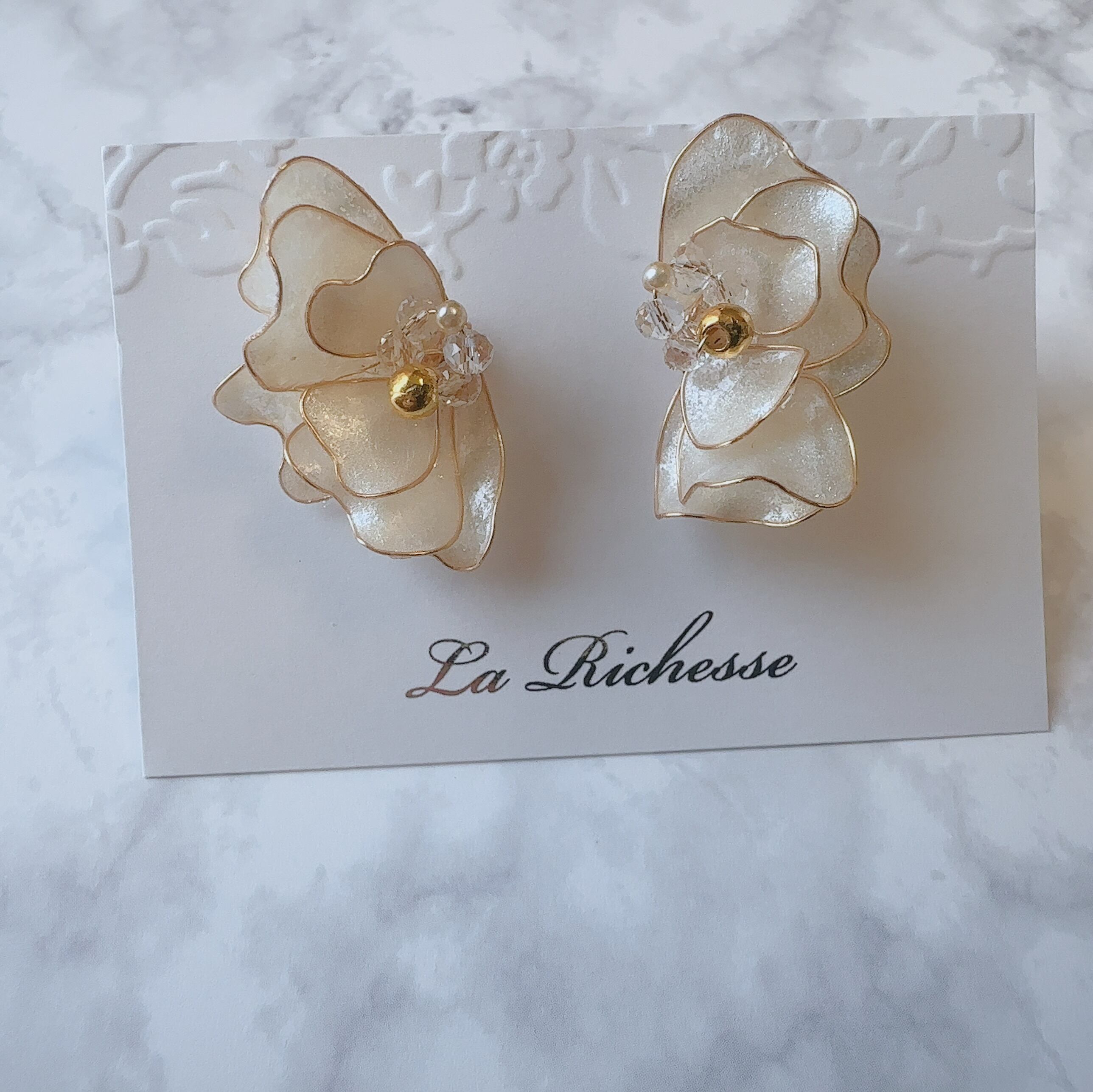 ディップアート技法により作成した花びらのアクセサリーです。