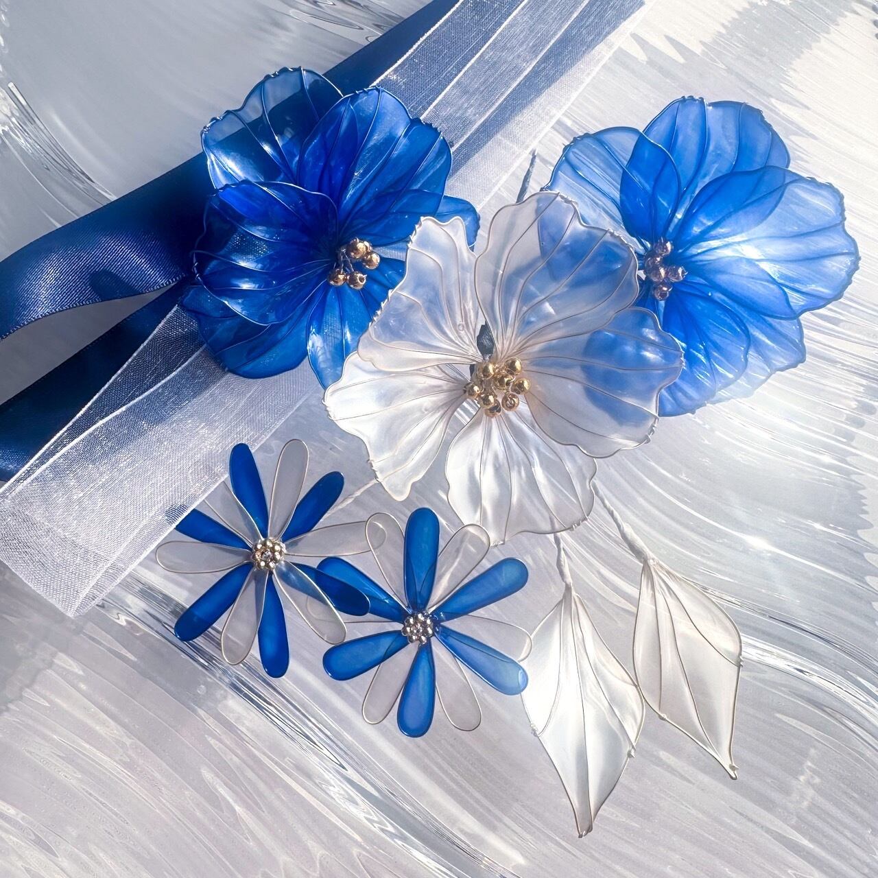 ディプシーブルーを基調に調色したブルーのヘアアクセサリーセットです。